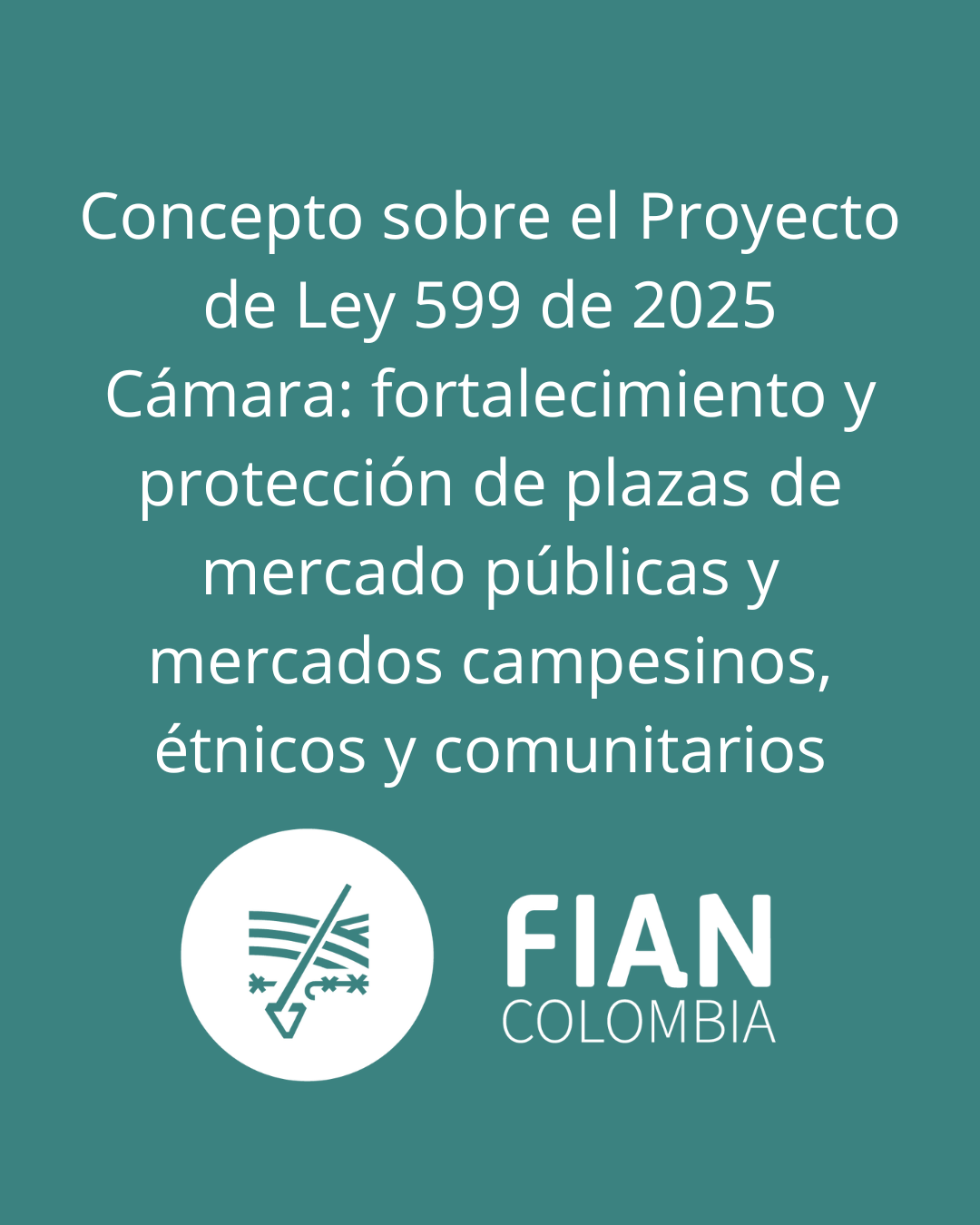 Concepto sobre el Proyecto de Ley 599 de 2025 Cámara: fortalecimiento y protección de plazas de mercado públicas y mercados campesinos, étnicos y comunitarios